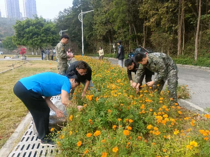 实践环节在春日暖阳中拉开帷幕。来自经济与管理学院的同学们齐聚花田边,认真聆听环境服务中心副经理讲授万寿菊的相关知识。从植物特性、生长周期到园林应用,深入浅出的讲解让同学们对眼前这片花田有了更深的认识。随后,在绿化队老师的现场示范指导下,同学们分组投入劳动实践。大家俯身田间,小心翼翼地采摘成熟的万寿菊种子,仔细拔除枯萎的植株与杂草,挥动锄头翻松土地。现场分工有序、配合默契,欢声笑语与劳作身影交织成一幅生动的春日劳动景象。